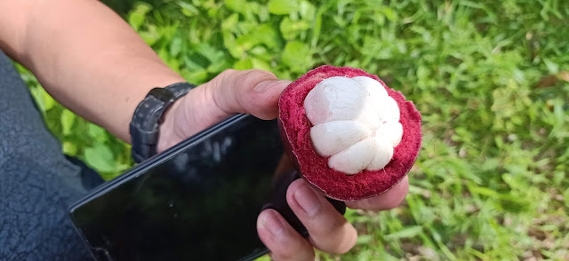 Fruit picking on Bobby's Fruit farm was a bit surreal. He was not fussed because it was an everything day thing for him. The property was huge and surrounded by the jungle. There was so much to choose from. You pick it, you eat it. Oranges, limes, jackfruit, breadfruit, durian, pineapples, bananas (not ready) rambutan, mangosteen, mata kucing (Cats Eye). Here is some information on 10 of the most popular in Borneo. I was all over the rambutans because there was so much and the mangosteen because it was new to me, and freakishly delicious. I washed everything down with a few sweet oranges, which they called lemons.